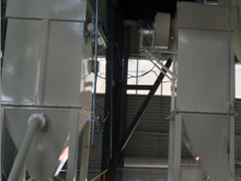 | 沸騰爐 沸騰爐由爐體、鼓風(fēng)機(jī)、煤倉(cāng)、皮帶輸送機(jī)、提升機(jī)、園盤喂料機(jī)等組成,爐體內(nèi)部采用耐火磚,外部采用紅磚砌筑而成,通過(guò)遠(yuǎn)程控制系統(tǒng),實(shí)現(xiàn)自動(dòng)化燃燒。此爐也可燃燒生物質(zhì)燃燒。 | 熱風(fēng)爐 噴煤爐由爐體、煤破機(jī)、噴煤機(jī)、輸送機(jī)等組成,通過(guò)遠(yuǎn)程自動(dòng)化運(yùn)行。爐體采用耐火磚,外面采用保溫棉隔熱,并用鋼板進(jìn)行維護(hù)。其工作原理是:煤制備成小于8mm粒度后,加入料斗,經(jīng)鉸刀進(jìn)入機(jī)器內(nèi)破碎成小于0.09mm篩余的細(xì)粉。由內(nèi)置風(fēng)機(jī)吹入燃燒室,與空氣充分燃燒。 |