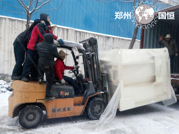 3.2018年1月7-9日,客戶指定發(fā)貨日期,適逢大雪嚴(yán)寒天氣,國恒員工戰(zhàn)天斗地,在冰天雪地中,按時(shí)按量保質(zhì)完成9輛貨柜裝箱任務(wù):